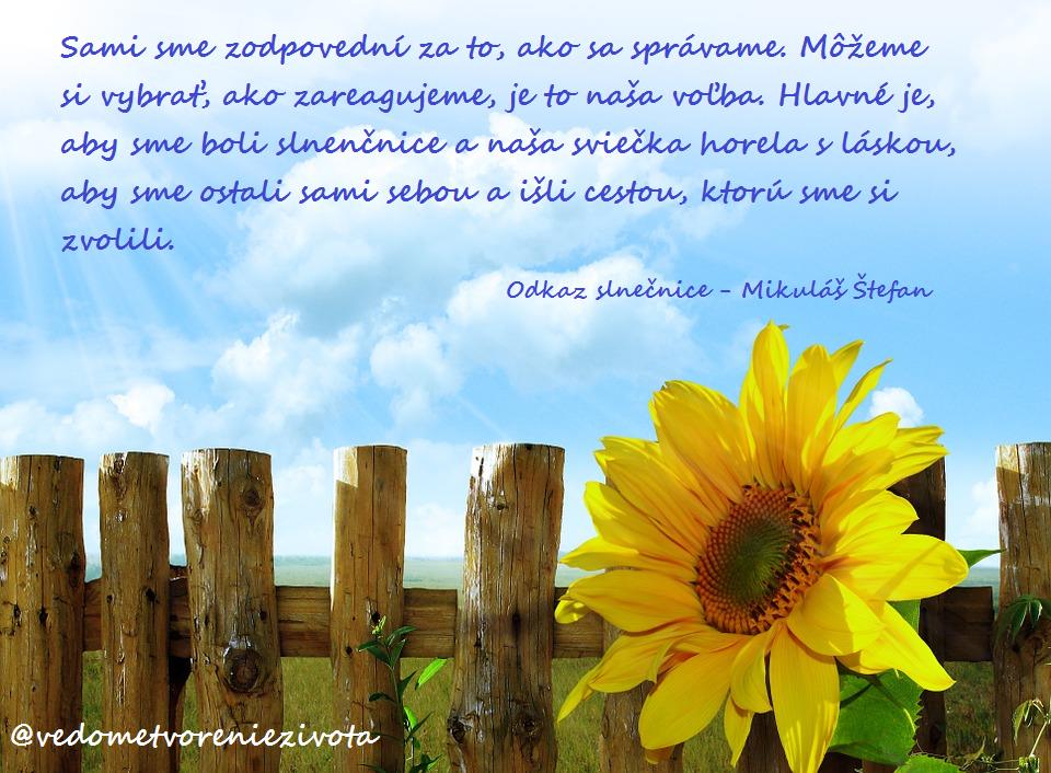 Skúsme byť empatickí a vnímať nielen náš pohľad na danú situáciu ale aj pohľad inej osoby. Pravdu nemá nikto a predsa ju majú všetci. Je to len uhol pohľadu. Všetko sa dá ak človek chce. Vy sa rozhodnete či dnes uvidíte to pekné alebo sa radšej bez väčšej snahy zameriate na to ,,zlé". V dnešnej dobe je toho ,,zlého" až moc. Všade kde sa človek pozrie či sú to noviny, časopisy, internetové stránky, TV, reklamy ani nehovorím ... vidí len bolesť, strach, zlobu, nenávisť, súťaživosť, krádež, nelásku a všetky média sa nám snažia ,,povedať" že to je predsa ok ... Naozaj je ok sa budiť v strese, v zlobe, závistí ? NIE ... veď zloba zhoršuje naše zdravie a keď sme podráždení tak sme viac náchylní k nakupovaniu a to je fakt, a média to vedia. Tak začnime konečne robiť niečo pre sebe a pre tento svet.